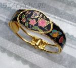 Браслет "Бабочки и цветы на черном" под золото/клуазоне
