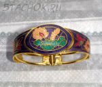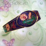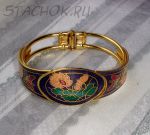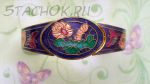 Браслет "Бабочки и цветы на синем" под золото/клуазоне
