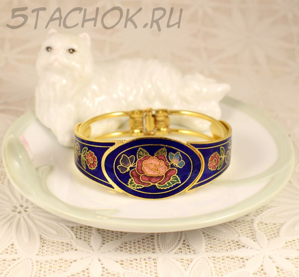 Браслет "Цветы и бабочки на синем" клуазоне (Тайвань/Китай)