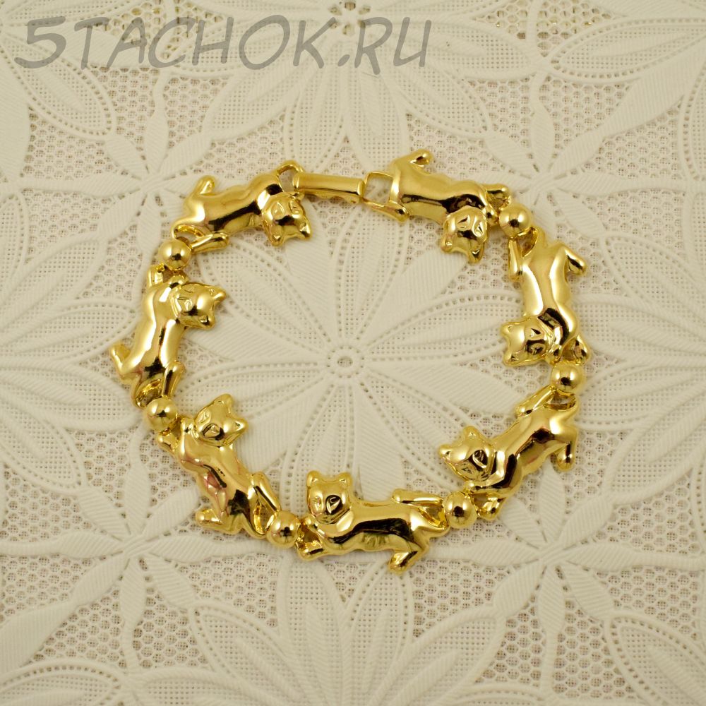 Оригинальный, чудесный и редкий браслет. Выполнен в цвете блестящего золота. Общая длина браслета 18см Размер одной секции с котиком 2,5*1,7см Винтаж Браслет в безупречном состоянии, изделие ранее не использовалось Производство Avon (США) Маркирован
