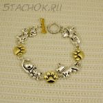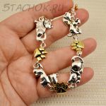 Чудесный, редкий браслет. Выполнен в цвете блестящего черненого серебра и золота. На браслете изображены 2 котика и 2 песика (все разные). Все элементы браслета объемные двусторонние. Длина браслета 19см. Длину можно уменьшить за счет снятия звеньев у застежки до 17,5см Винтаж 1980-х гг Браслет в безупречном состоянии, изделие ранее не использовался. Производство Premier Design (США) Маркирован