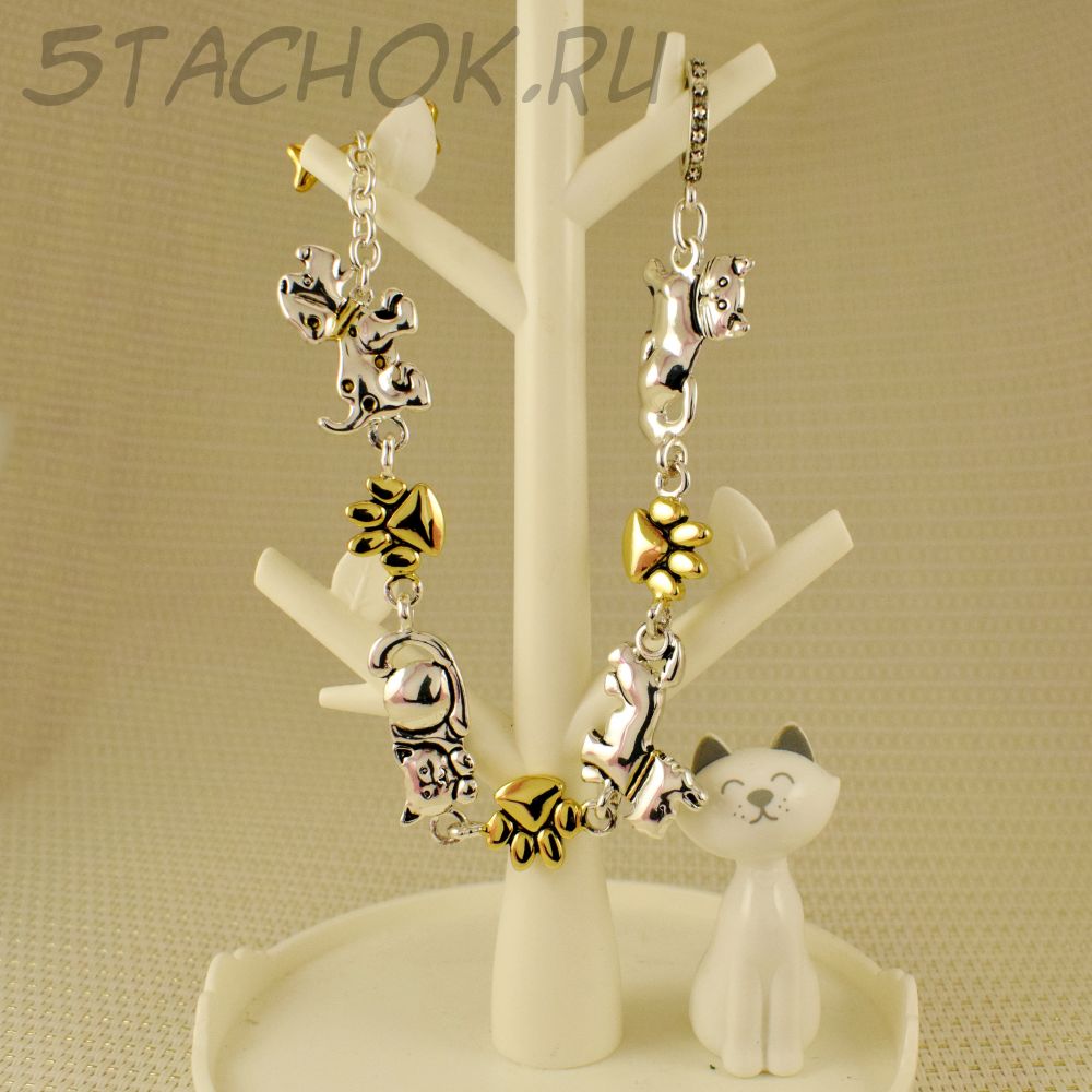 На браслете изображены 2 котика и 2 песика (все разные). Все элементы браслета объемные двусторонние.