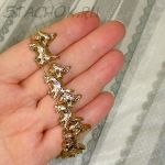 Симпатичный браслетик. Выполнен в блестящем золотом исполнении с прорисованной фактурой шерсти песиков. Песики подвижны вдоль веревочек. Общая длина браслета 20см, но она может быть и уменьшена. Отличный подарок любителю терьерчиков и песиков!