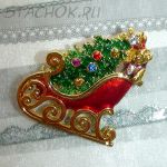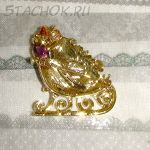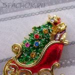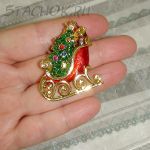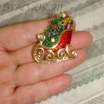 Брошь Новогодние саночки под золото, стразы, эмаль