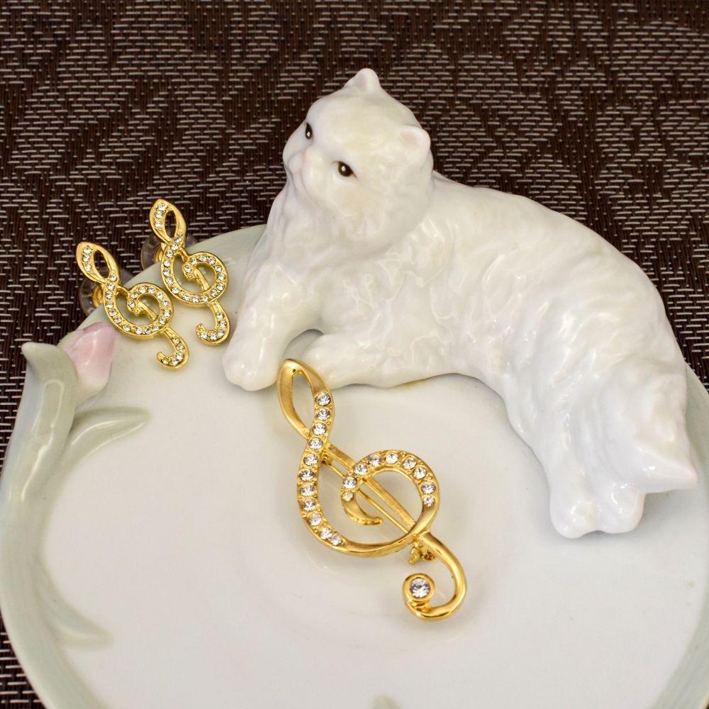 Брошь и серьги-гвоздики "Скрипичный ключ" (США)