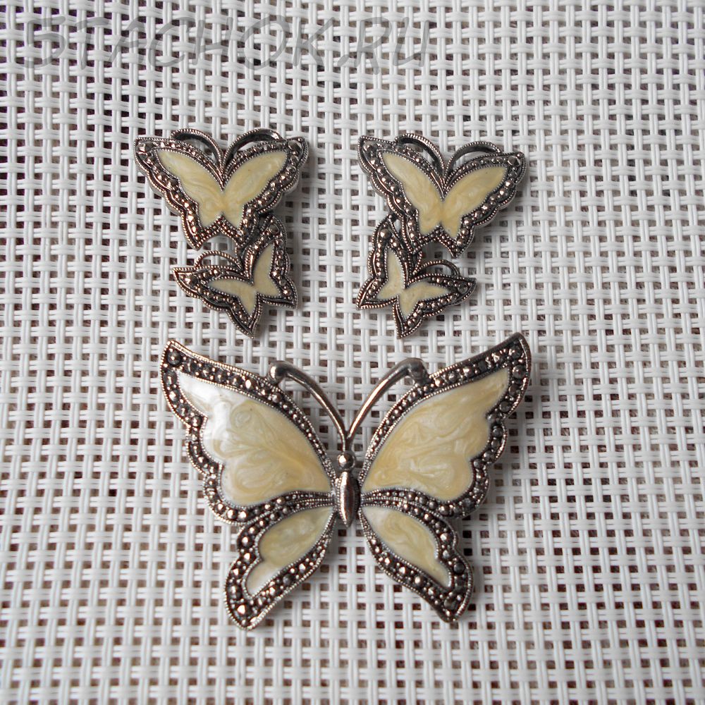 Брошь и серьги "Бабочки" под серебро с марказитами