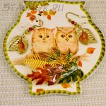 "Осенняя пора, очей очарование..." Выполнен под блестящую золотую чеканку с использованием перламутровой эмали оранжевого, охристого и зеленого цветов. У дужки серег - желтенькие и красненькие граненые стразики. У листиков прорисованы жилки и фактура листочков.