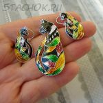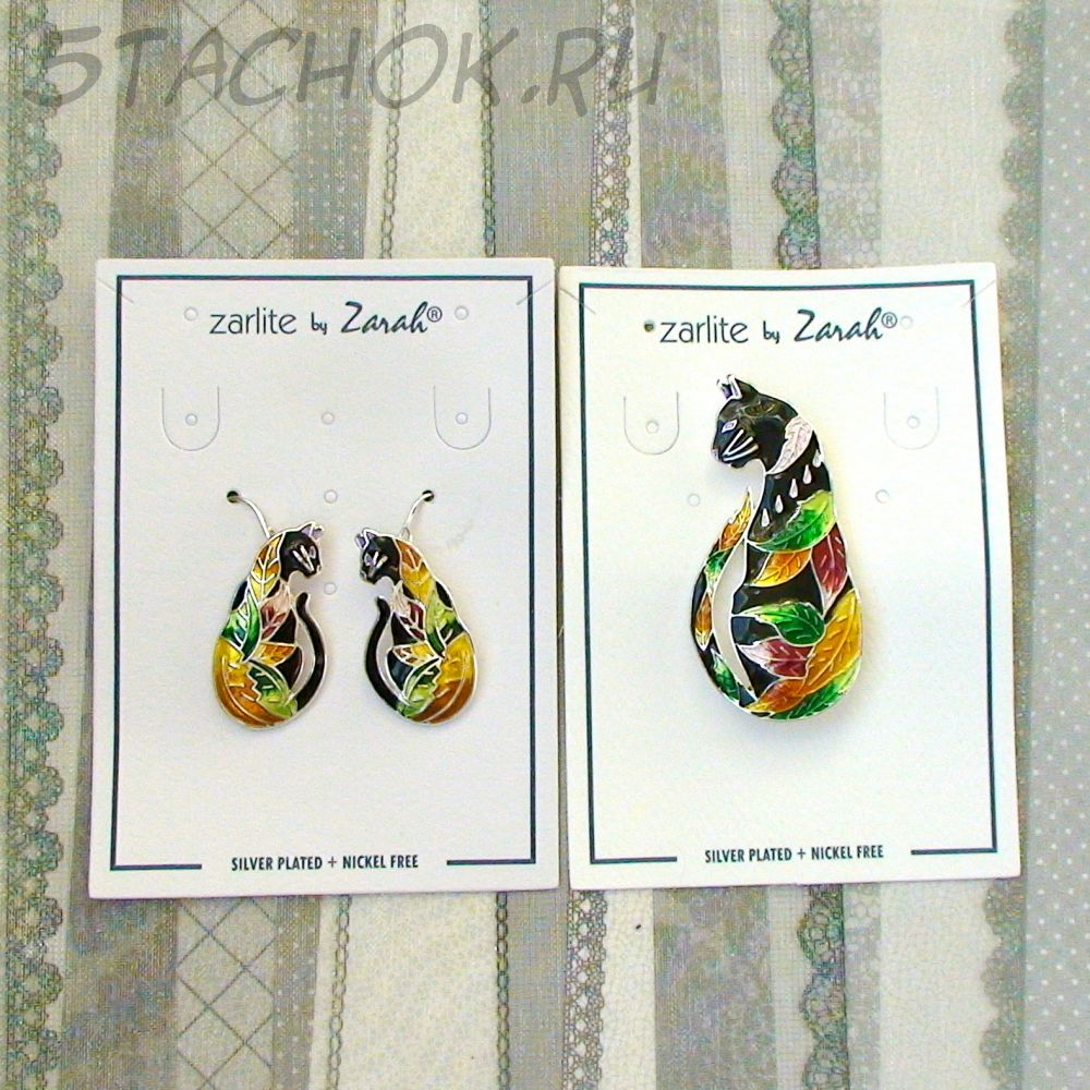 Брошь и серьги "Осенняя кошка" серебро/эмаль