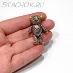 У мишутки подвижные ножки, ручки и голова. Выдвигается петелька, позволяющая носить брошку как подвеску.