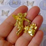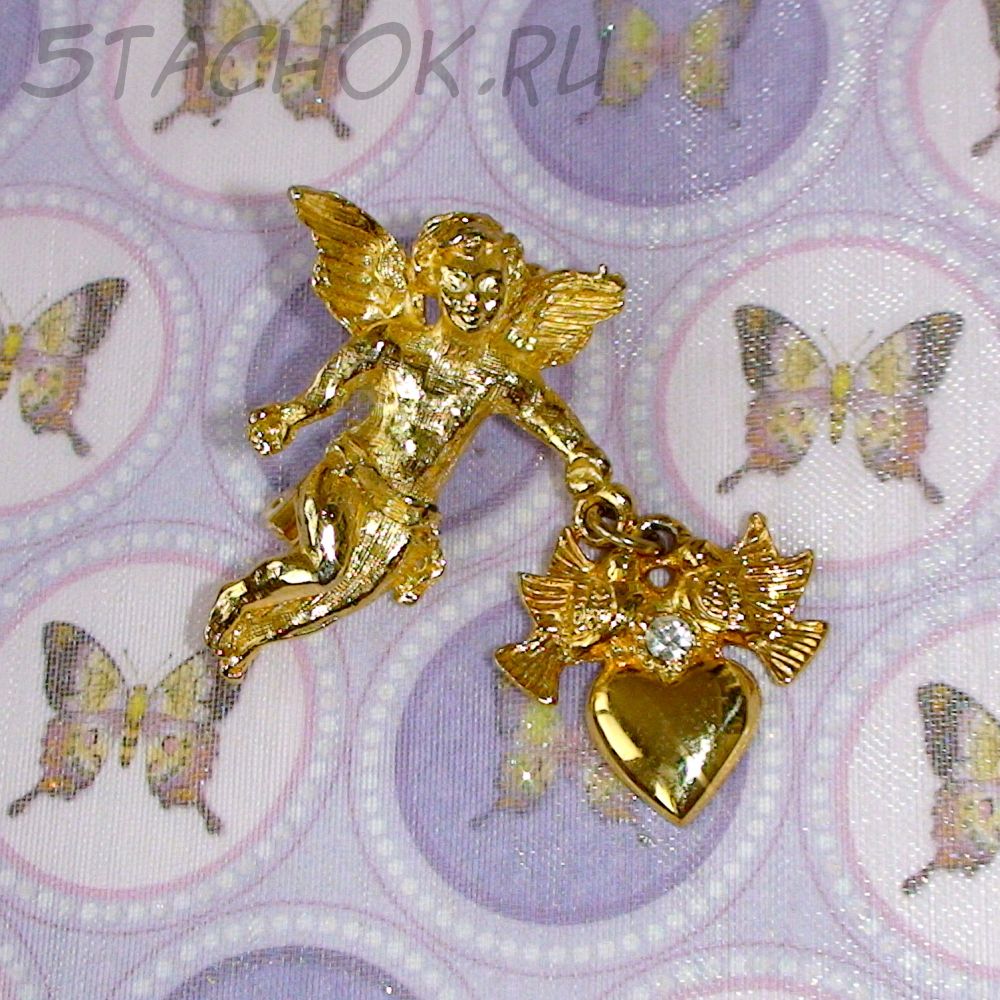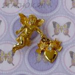 Брошь "Ангел с сердечком и с голубками" под золото, стразы