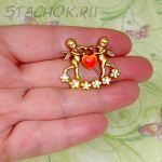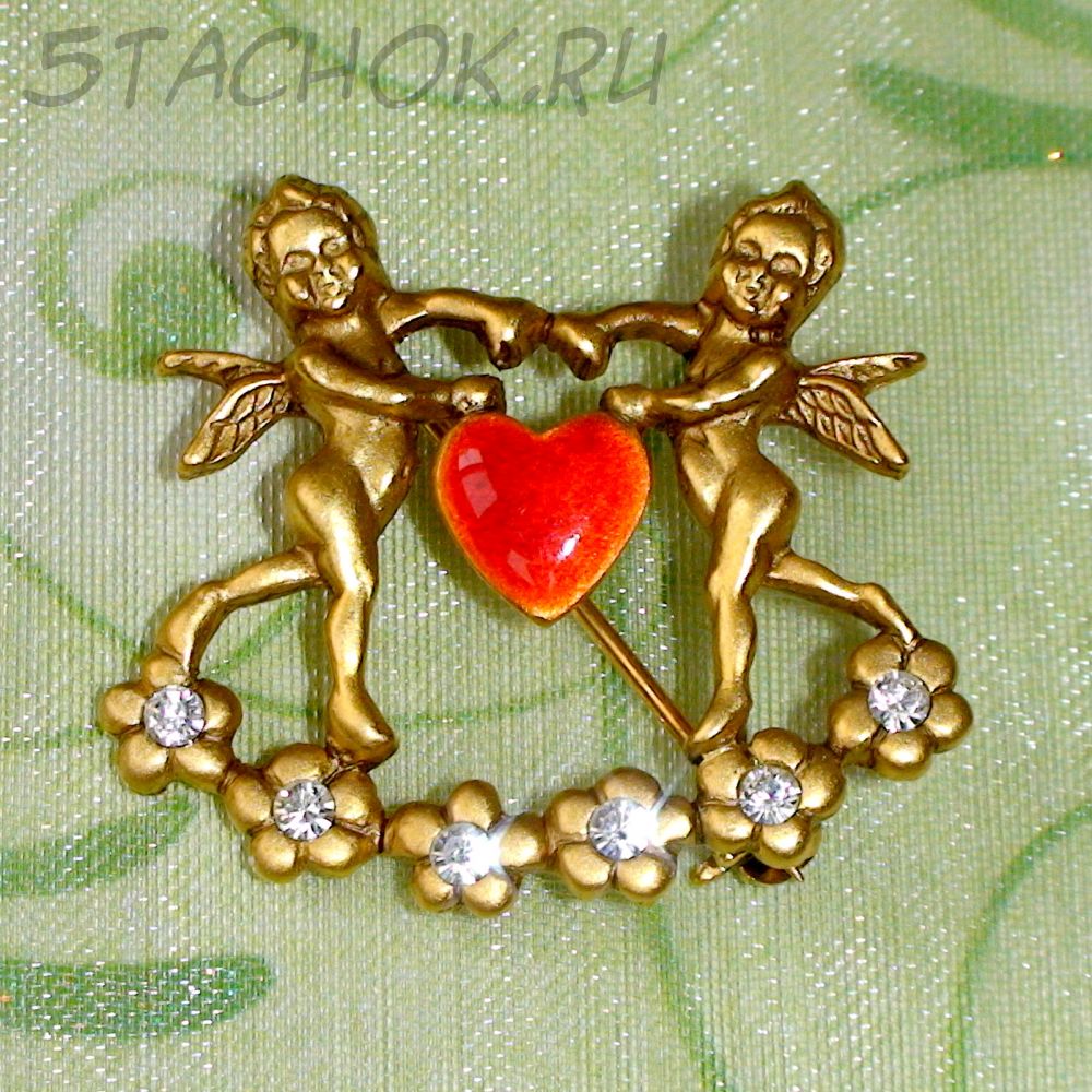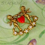 Брошь "Ангелы любви" под античное золото/эмаль/стразы