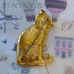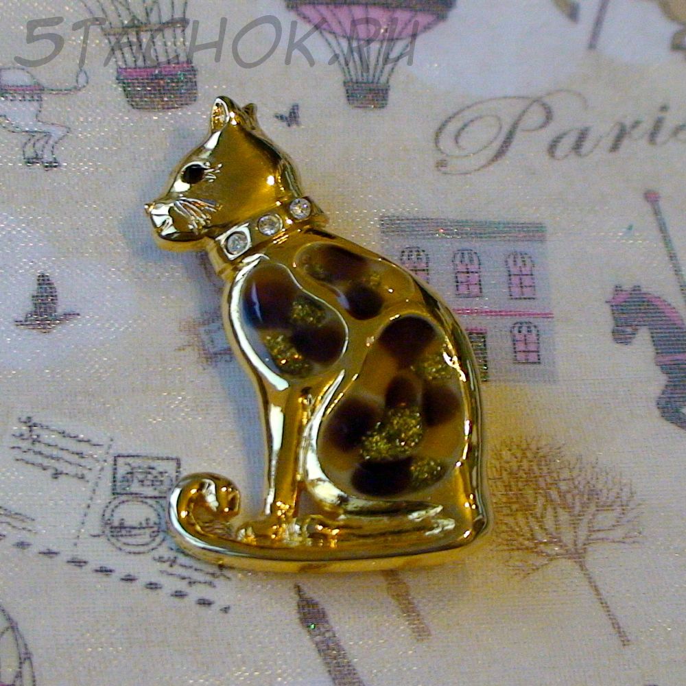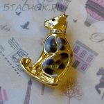 Брошь "Бенгальская кошка" под золото, эмал, стразы