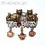 Брошь "Чайное трио котиков" (KC США)