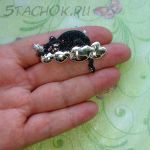 Выполнена под блестящее серебро. Котик из ювелирной крошки черного цвета. Мышка и звездочка - крошка серебристого цвета. у котика подвижный хвостик.