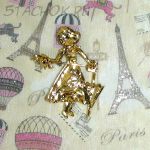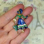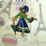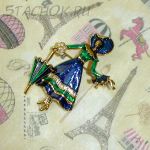 Брошь "Дама с зонтиком на прогулке" под золото/эмаль/стразы