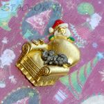Выполнена под матовое золото с использованием блестящей эмали ярких цветов. Маленькая девочка с мишкой уснула в кресле, ожидая Санту с подарками. Но он все-таки пришел и принес для нее подарочки!