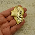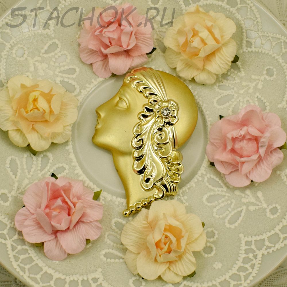 Прекрасная и редкая брошка в ретро-стиле. Выполнена в цвете матового и блестящего золота. Очень красивая девушка мечтательно смотрит ввысь. У нее прекрасный головной убор с камушком и бусы на шее. Можно подобрать вторую брошку - объект, на который обращен ее взгляд.