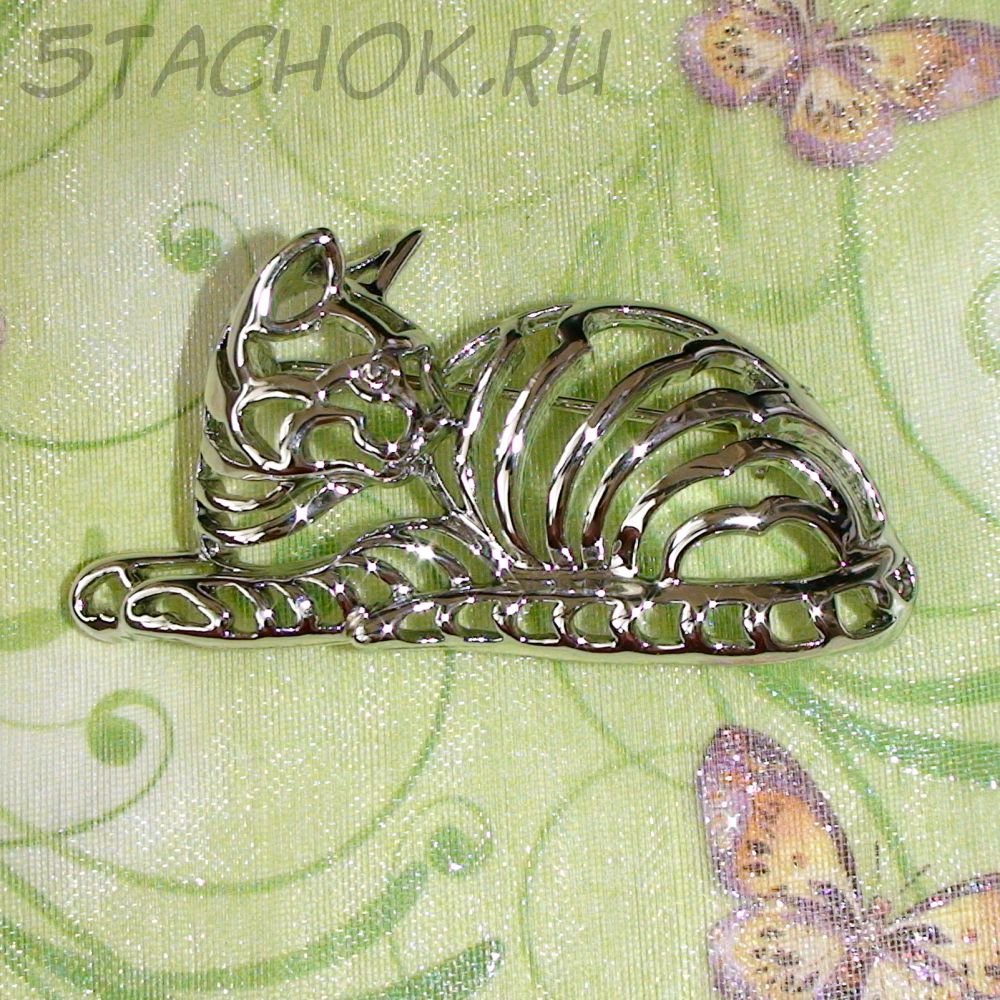 Брошь "Домашняя кошечка" под серебро