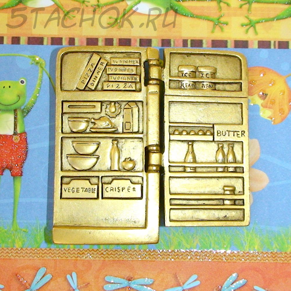 Брошь "Холодильник" под античное золото