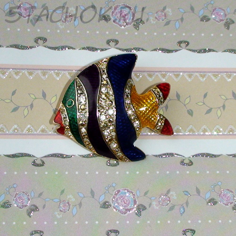 Брошь "Экзотическая рыбка" под золото/эмаль/стразы