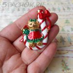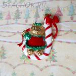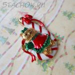 Брошь "Киска и новогодняя конфетка" (AJC США)