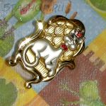 Брошь "Королева-кошка" под золото/серебро/стразы