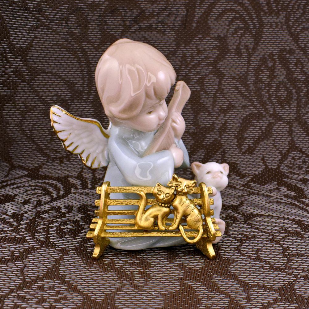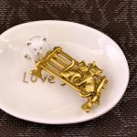 Брошь "Кошечка и котенок на скамейке" цвет золота (AJC США)