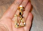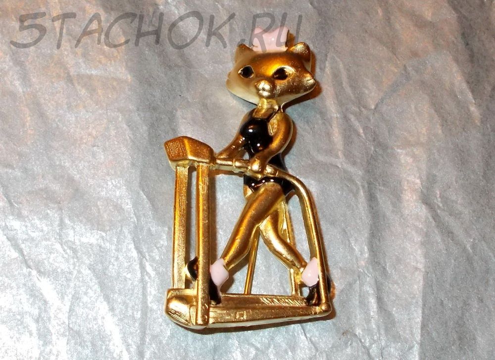 Очаровательная брошь, довольно редкая! Выполнена под матовое и блестящее золото. Глазки кисы из черной эмали. Киса занимается фитнесом в тренажерном зале.