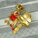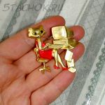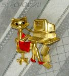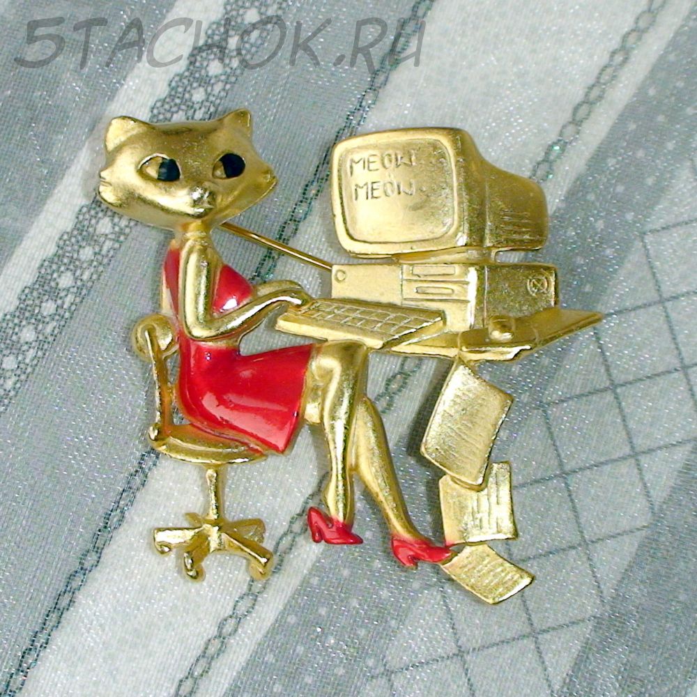 Брошь "Кошечка за компьютером" под золотом, эмаль
