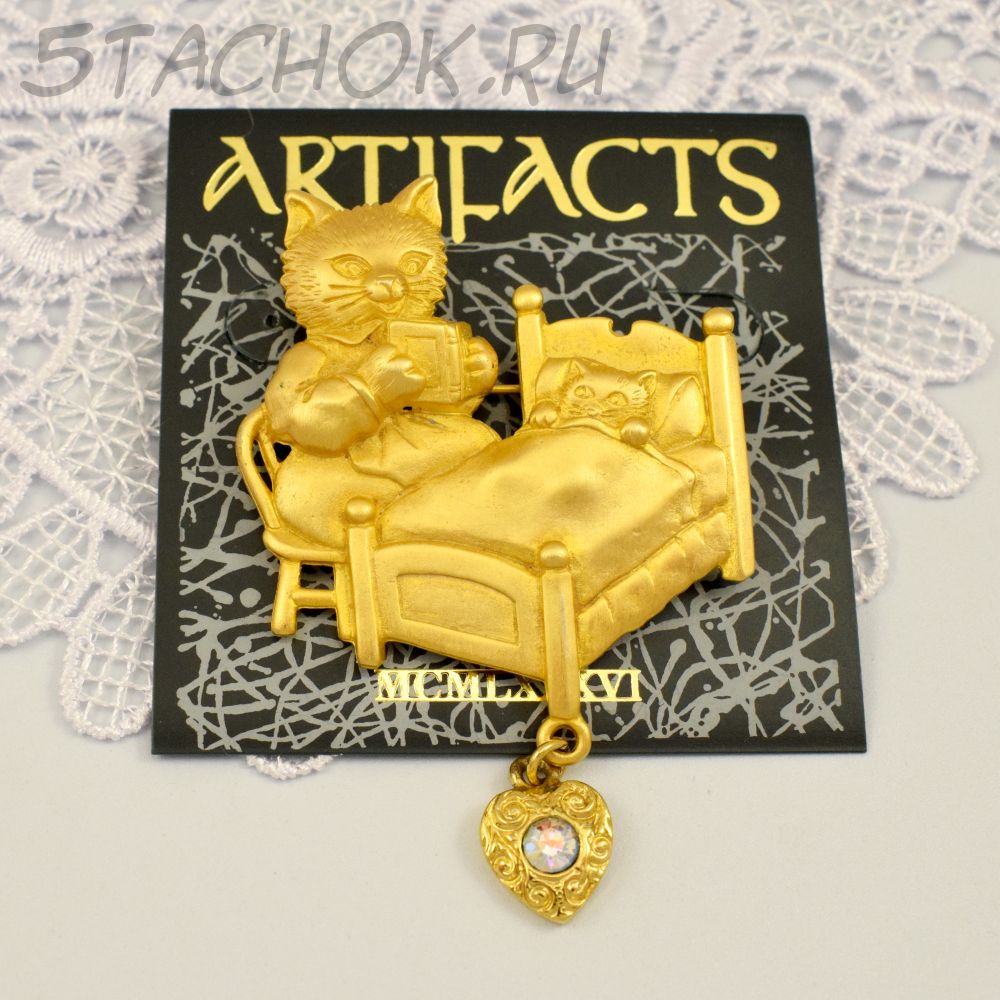 Брошь "Кошка читает книжку котенку" (JJ США)