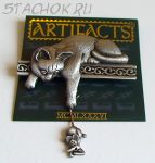 Брошь "Кошка и сердитая мышка" цвет олова (JJ США)