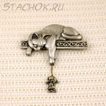 Красивая, оригинальная брошь. Выполнена из пьютера. Прорисованы мельчайшие детали, такие как мимика кисы и мышки.