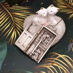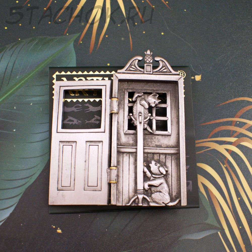 Брошь "Кошка и собачка за дверью" цвет олова (JJ США)