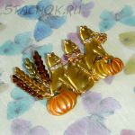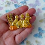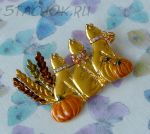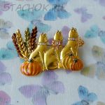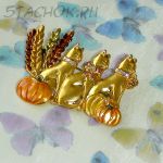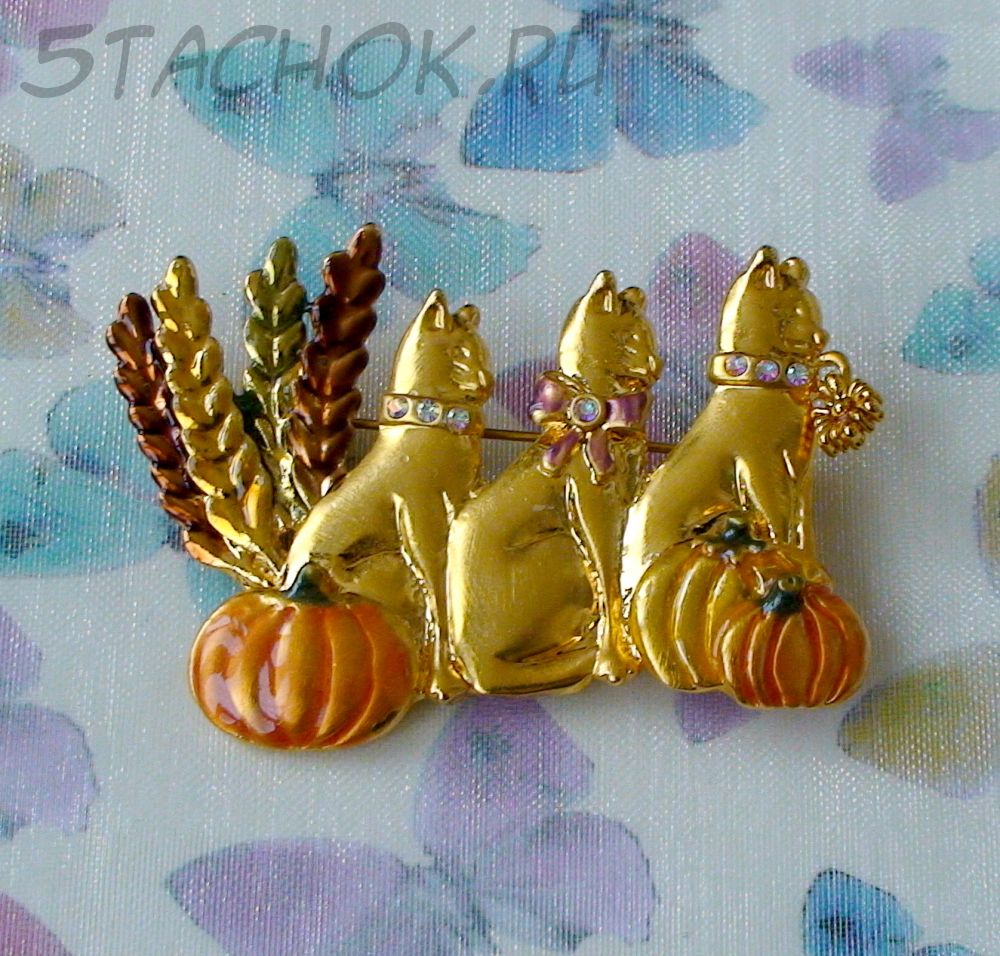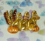 Брошь "Кошки и урожай" под золото, эмаль, стразы