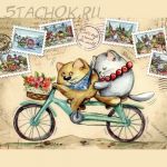 Брошь "Кот и кошечка на велосипеде" (AJC США)