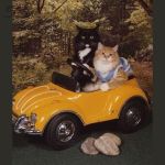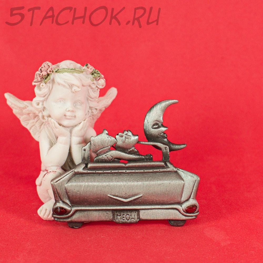 Брошь "Кот и кошечка в кабриолете" цвет олова (AJC США)