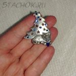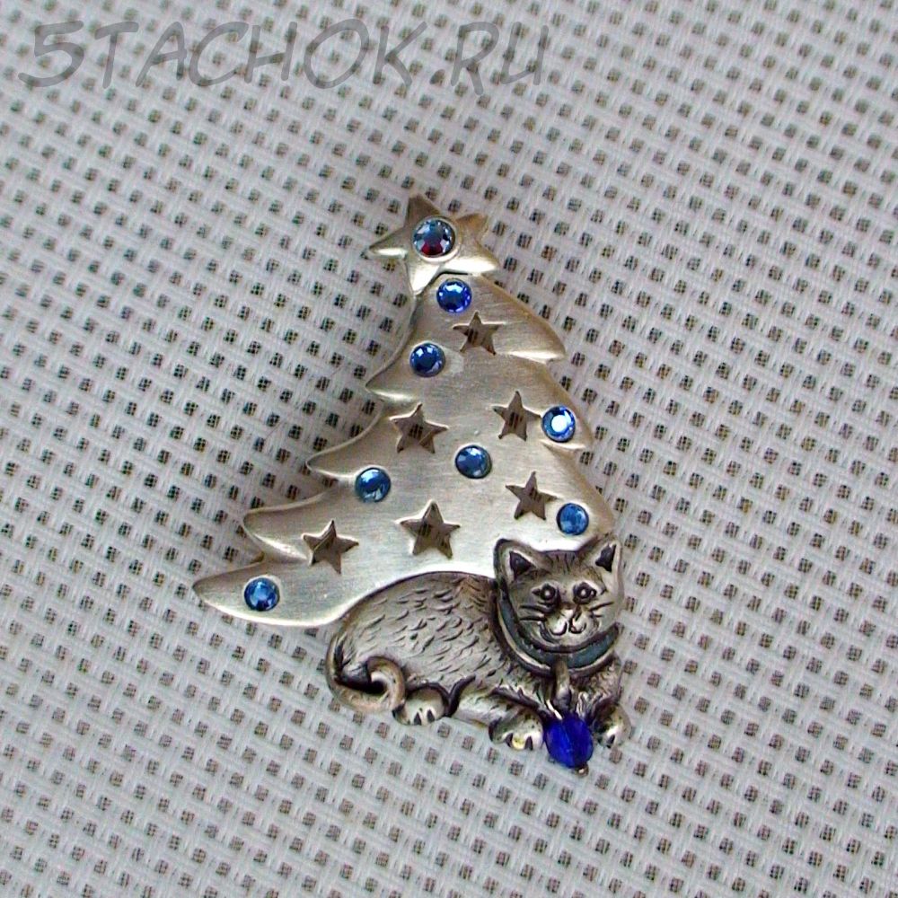 Брошь "Кот у Новогодней елочки" цвет серебра