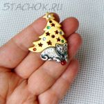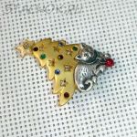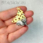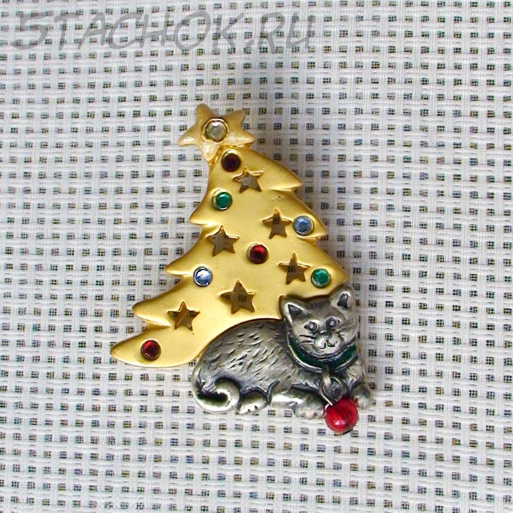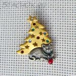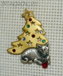 Брошь "Кот у Новогодней елочки" цвет серебра и золота