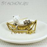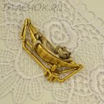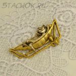 Брошь "Кот в шезлонге" цвет олова/золота (Danecraft США)