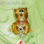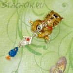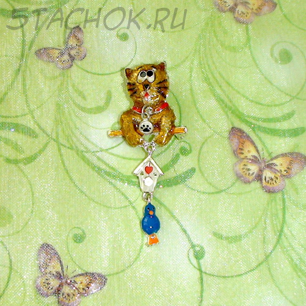 Брошь "Котейка и скворечник" под серебро/эмаль/крошка