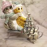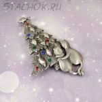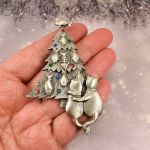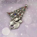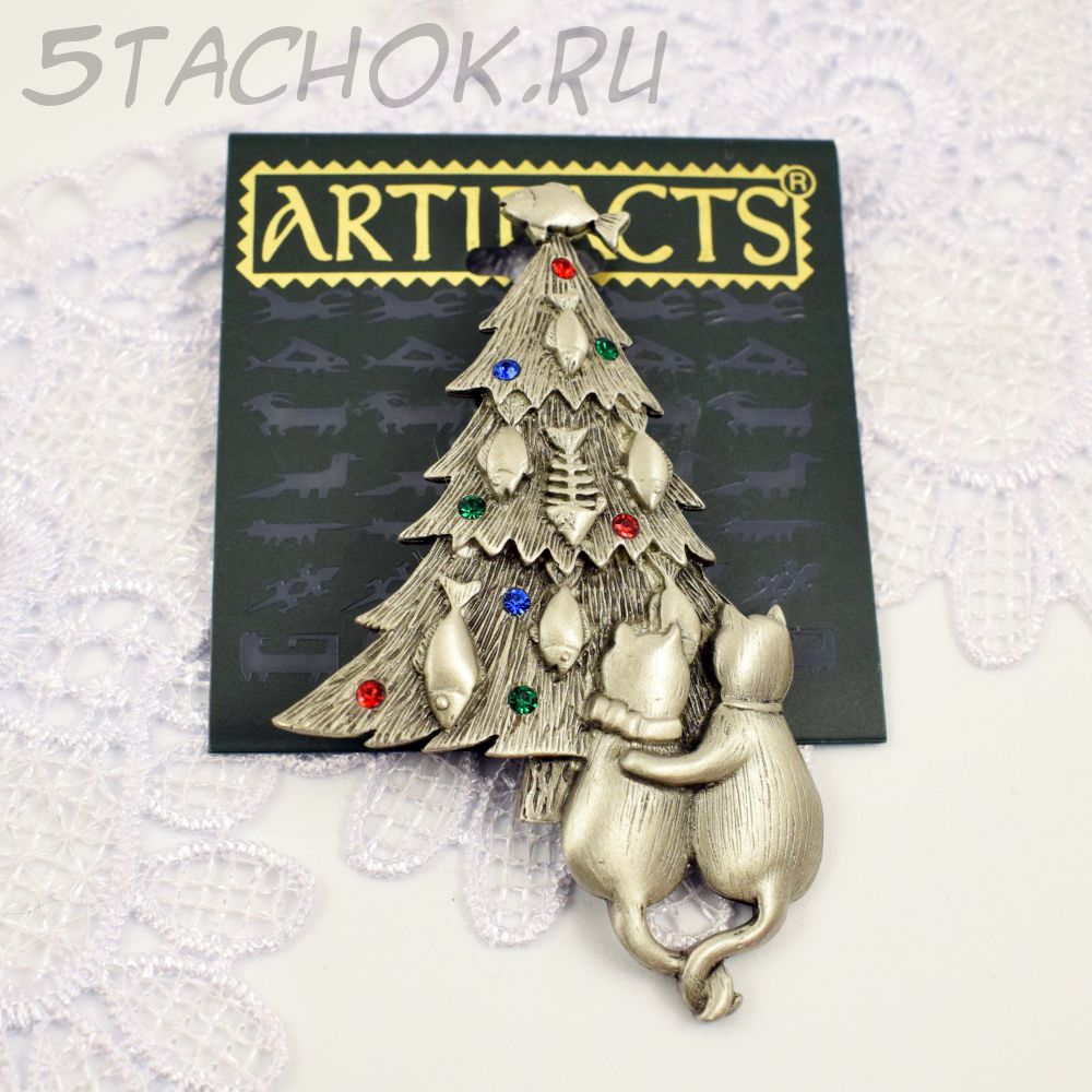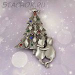 Брошь "Котики у елочки" цвет олова (JJ США)