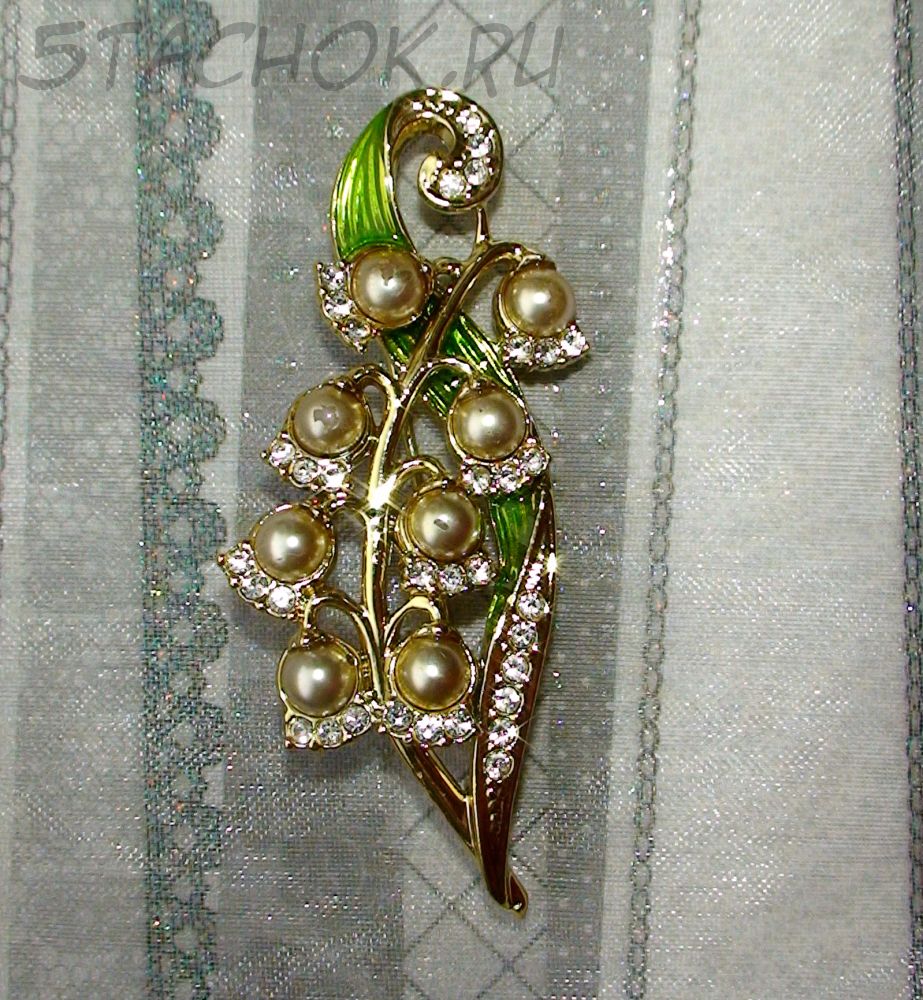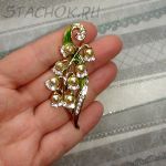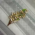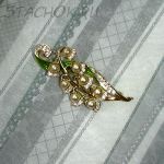 Брошь "Ландыши" под золото/эмаль/исск.жемч./сваровски