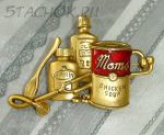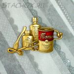 Брошь выполнена под античное золото с использованием красной блестящей эмали.