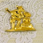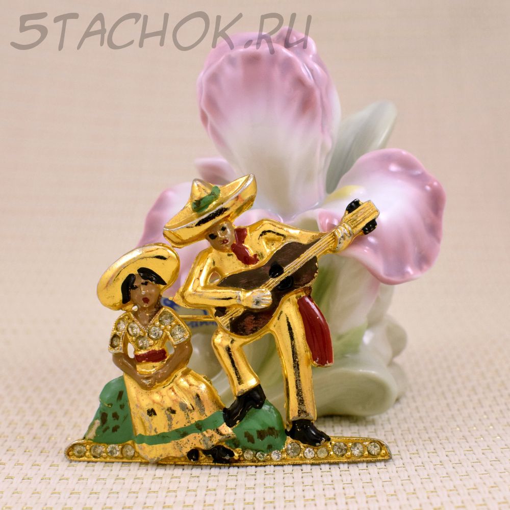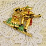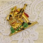 Редкая, красивая брошь. Выполнена в цвете золота с использованием разноцветной эмали и страз белого цвета.