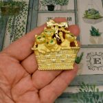 Брошь "Милые котята в корзинке" цвет золота (AJC США)