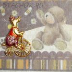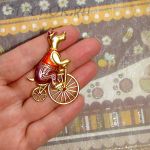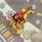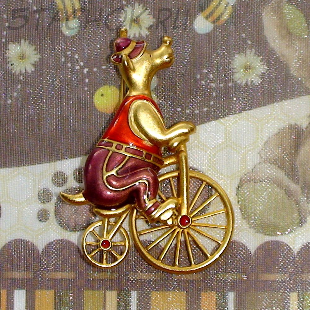 Брошь "Мишка-велосипедист" под золото/эмаль