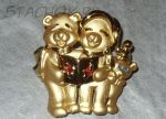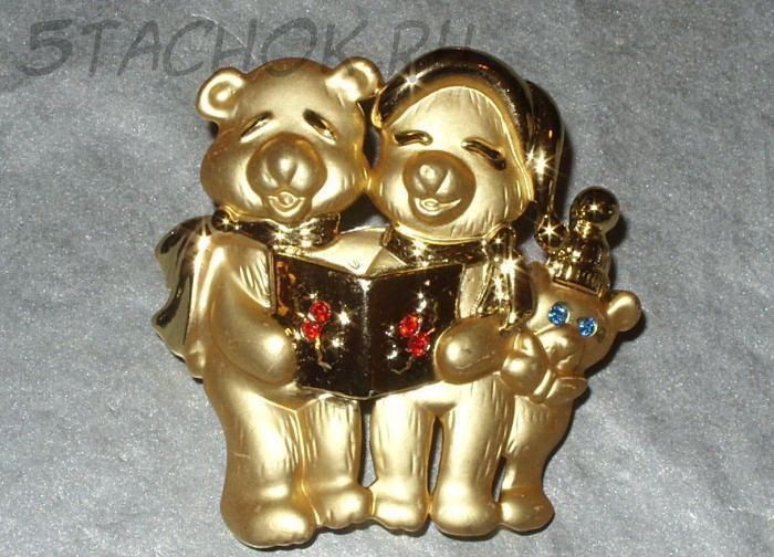 Брошь "Мишки поют псалмы на Рождество" под золото/стразы