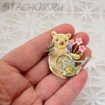 Брошь "Мишутка-цветовод" (США)