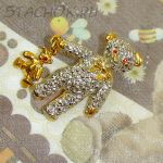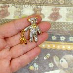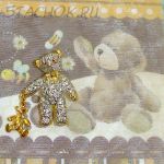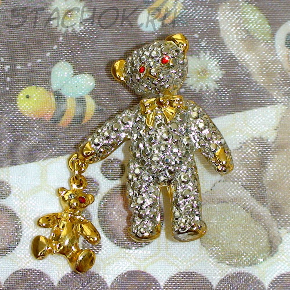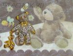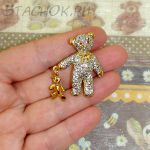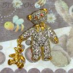 Брошь "Мишутка с игрушкой" под золото, серебро, стразы