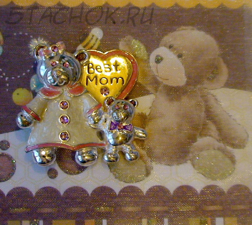 Брошь "Мишуткина лучшая мамочка" под серебро, эмаль, стразы